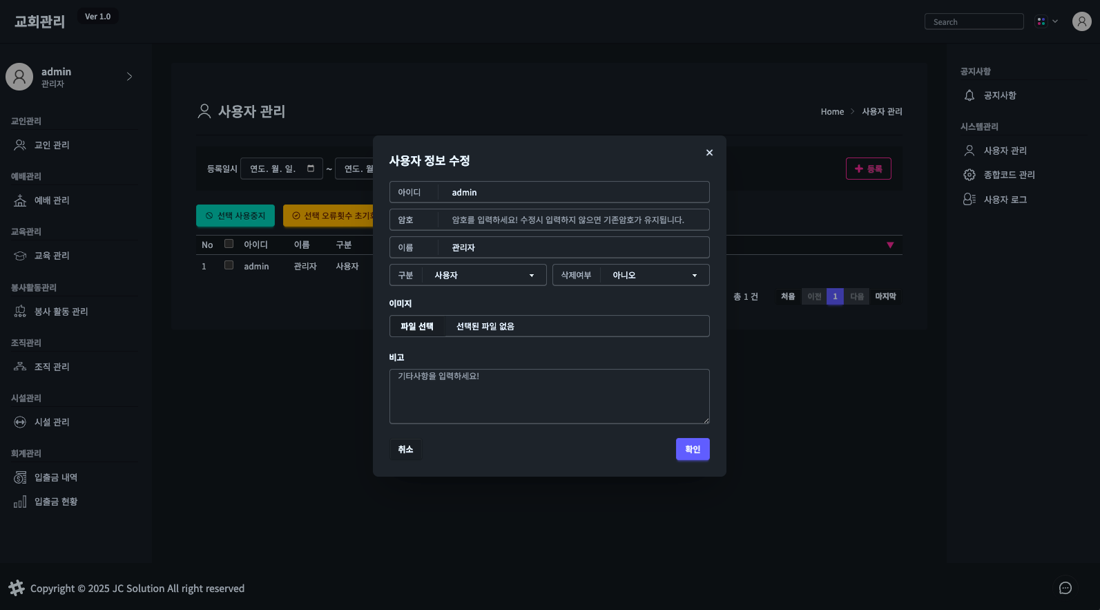 교회관리 솔루션 / JC Solution ltd. / 2025.11