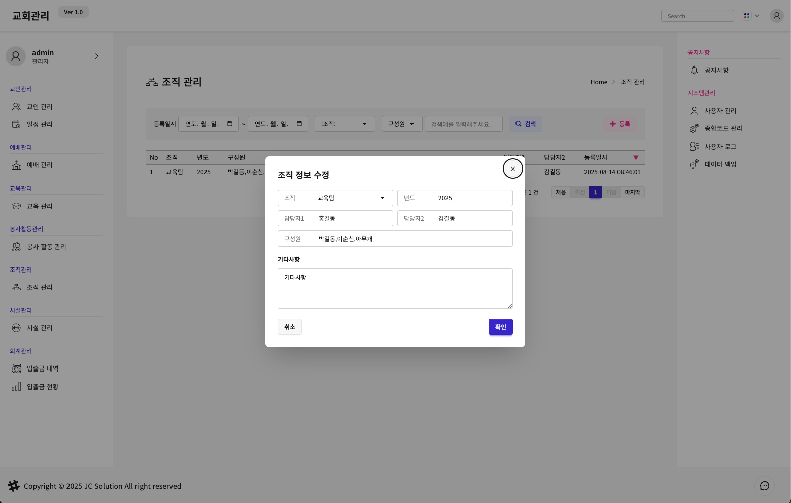 교회관리 솔루션은 소규모 개척교회나 중형 교회에 맞게 구축되어진 관리 솔루션입니다.