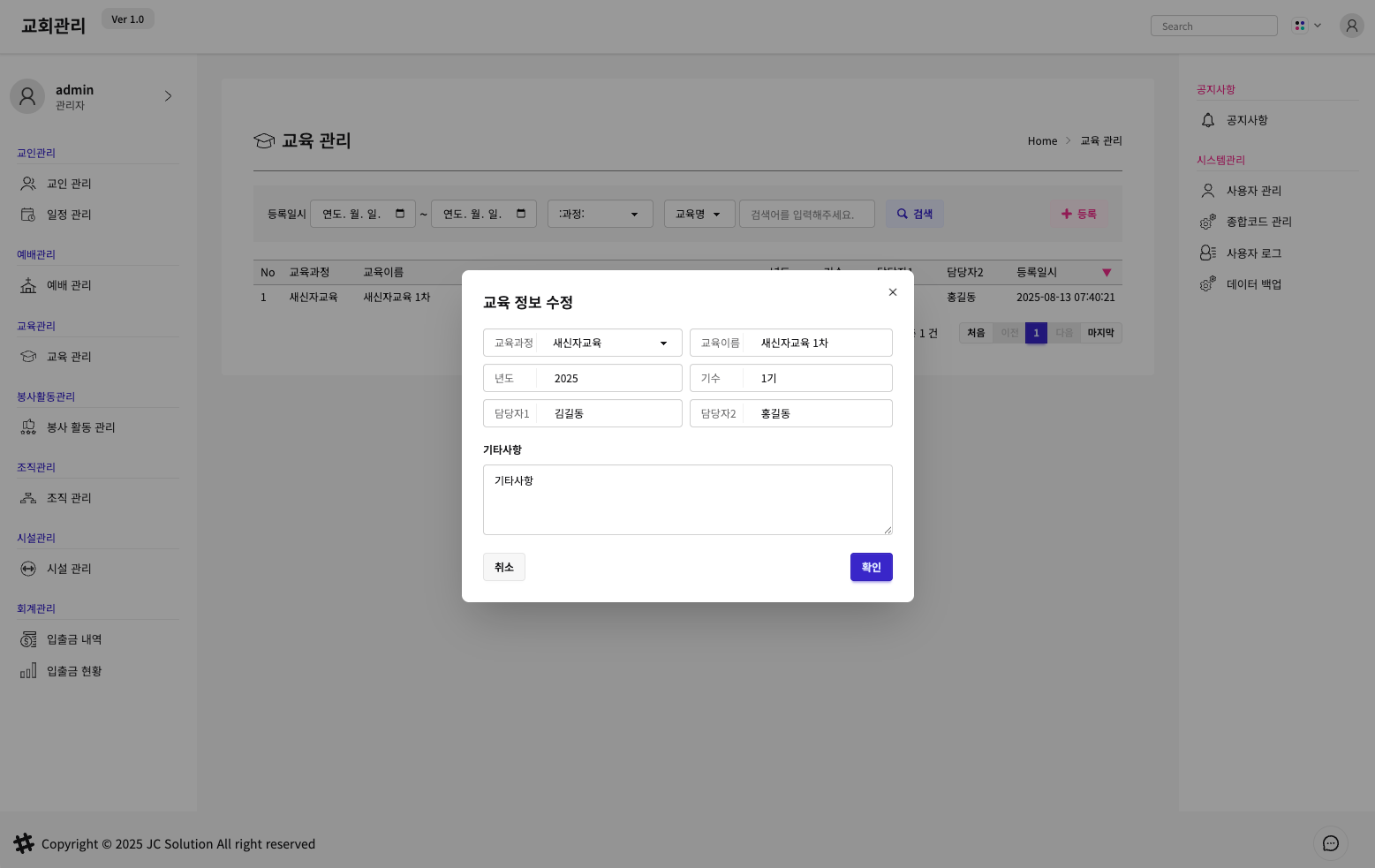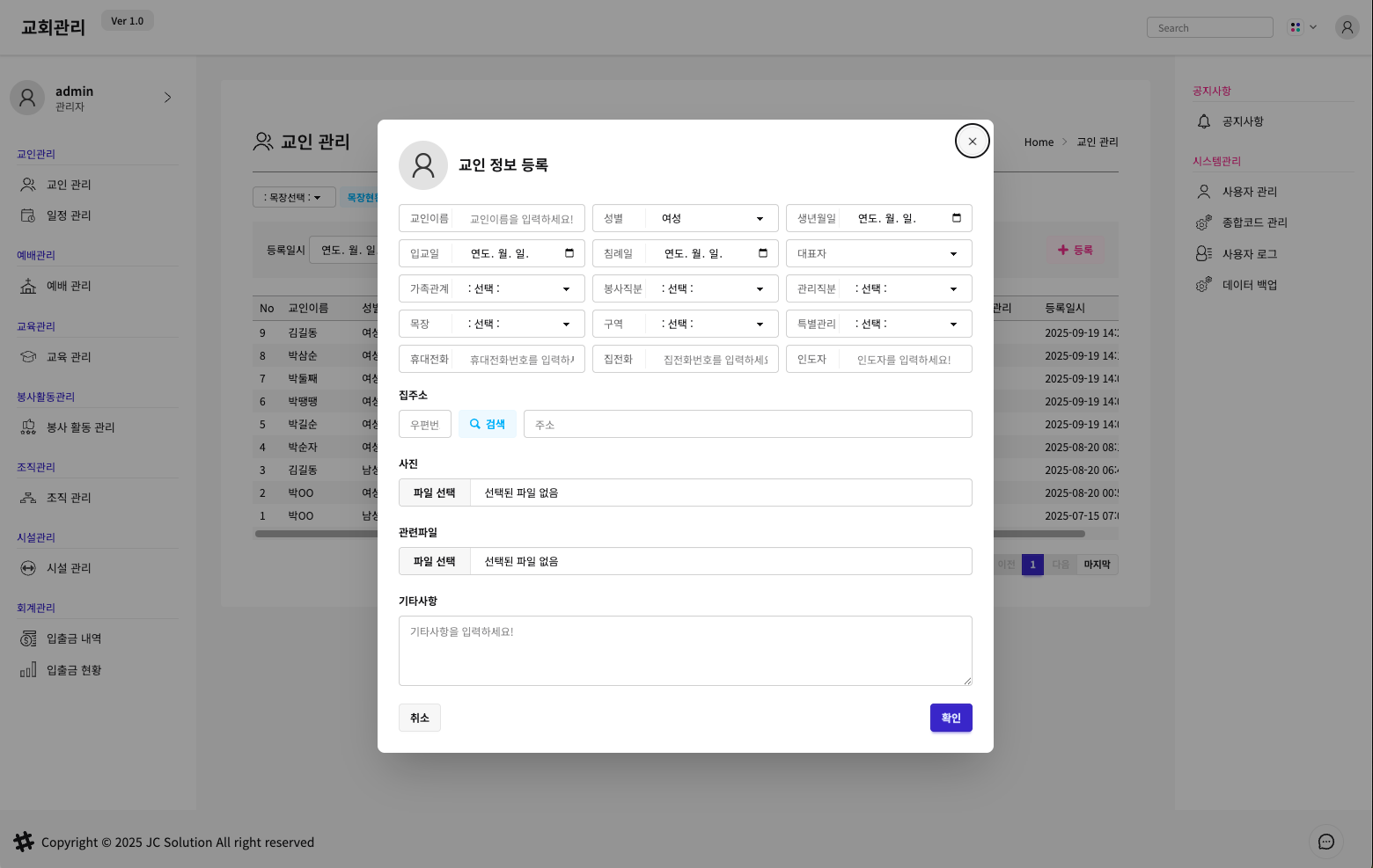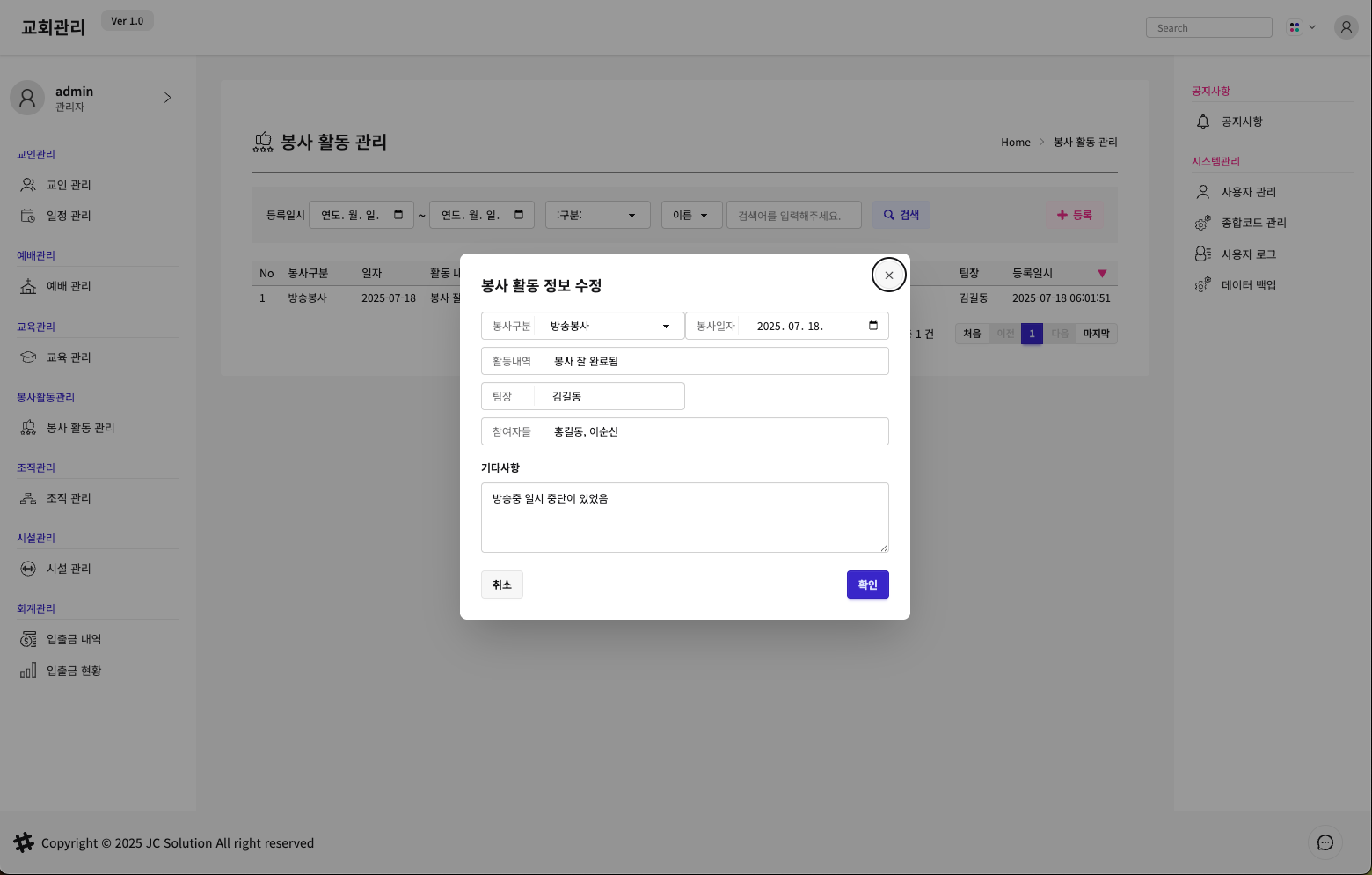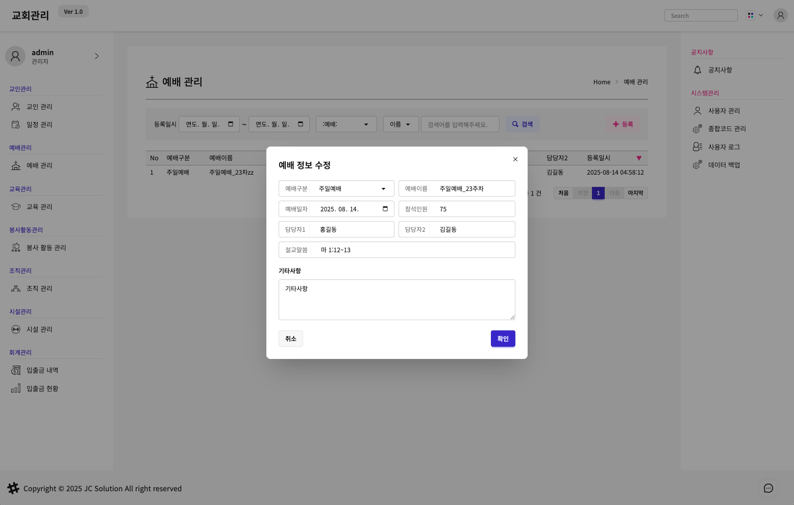교회관리 솔루션은 소규모 개척교회나 중형 교회에 맞게 구축되어진 관리 솔루션입니다.